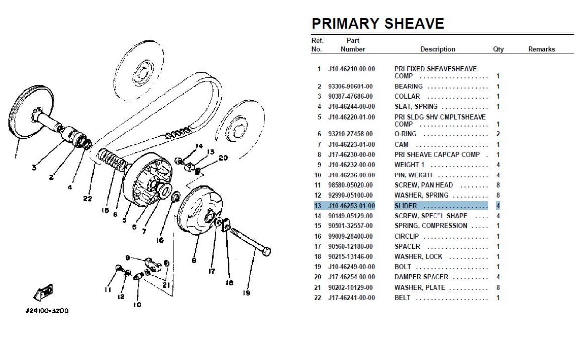 YAMAHA G1 PRIMARY SHEAVE PIN WEIGHT