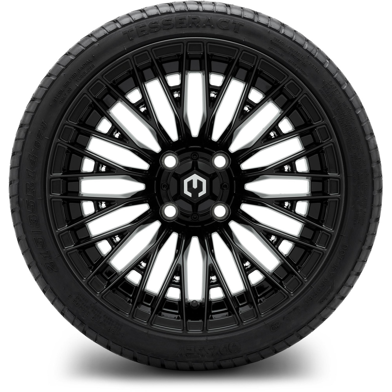 MODZ® MAG WHEEL - REAPER (K18) - FULL GLOSSY BLACK (14x7") FITTED WITH ODYSSEY 215/35-14" TYRE